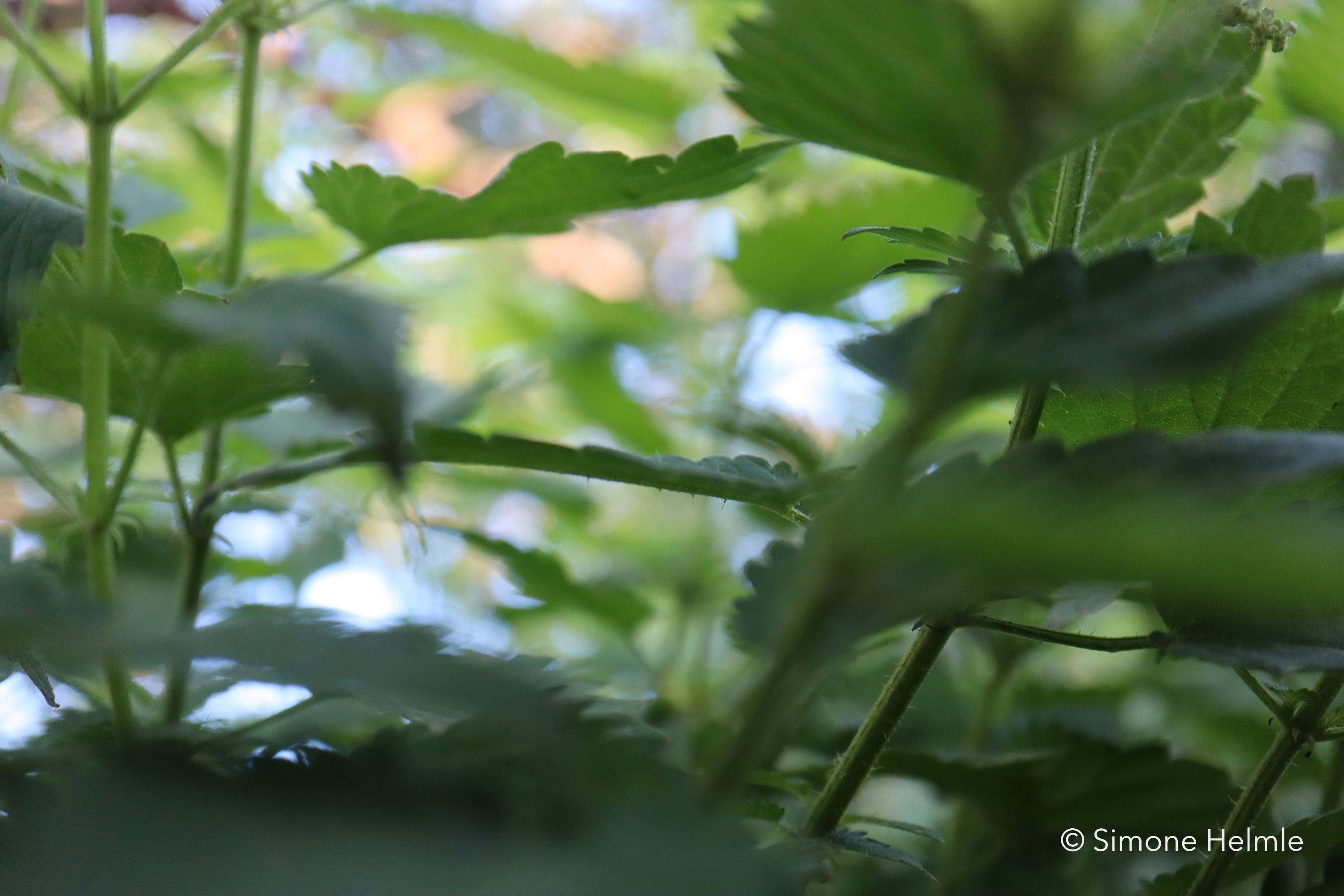 Die Brennnessel fasziniert mich auf besondere Weise. Wenn ihre Blätter leicht rötlich und in sattem Dunkelgrün aus dem Boden sprießen, kündigt sie das Frühjahr an. Im Laufe des Jahres wächst sie hoch. Sie wirkt – zumindest auf den ersten Blick – undurchdringlich. Die Blattpaare sind gegenständig, Knoten für Knoten überkreuzt. Quadratisch, kantig die Stängel. In jedem Stadium offenbart sie eine klare, eine anmutige Symmetrie. In dem Wort „anmutig“ steckt der Mut und die Ermutigung.